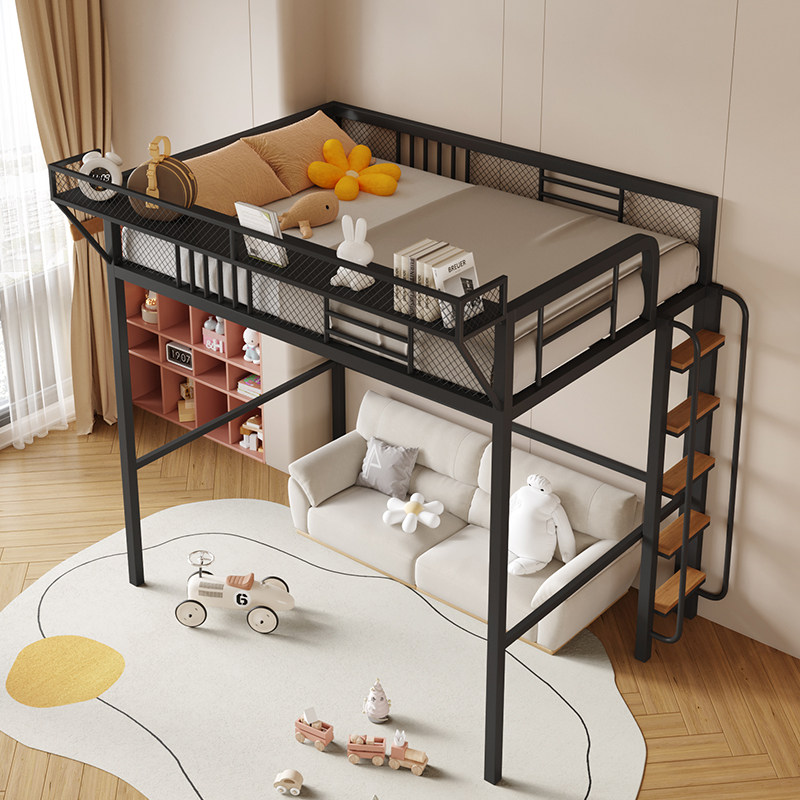 铁艺高架床单上层复式二楼床置物架上床下桌错层高低床步梯阁楼床
