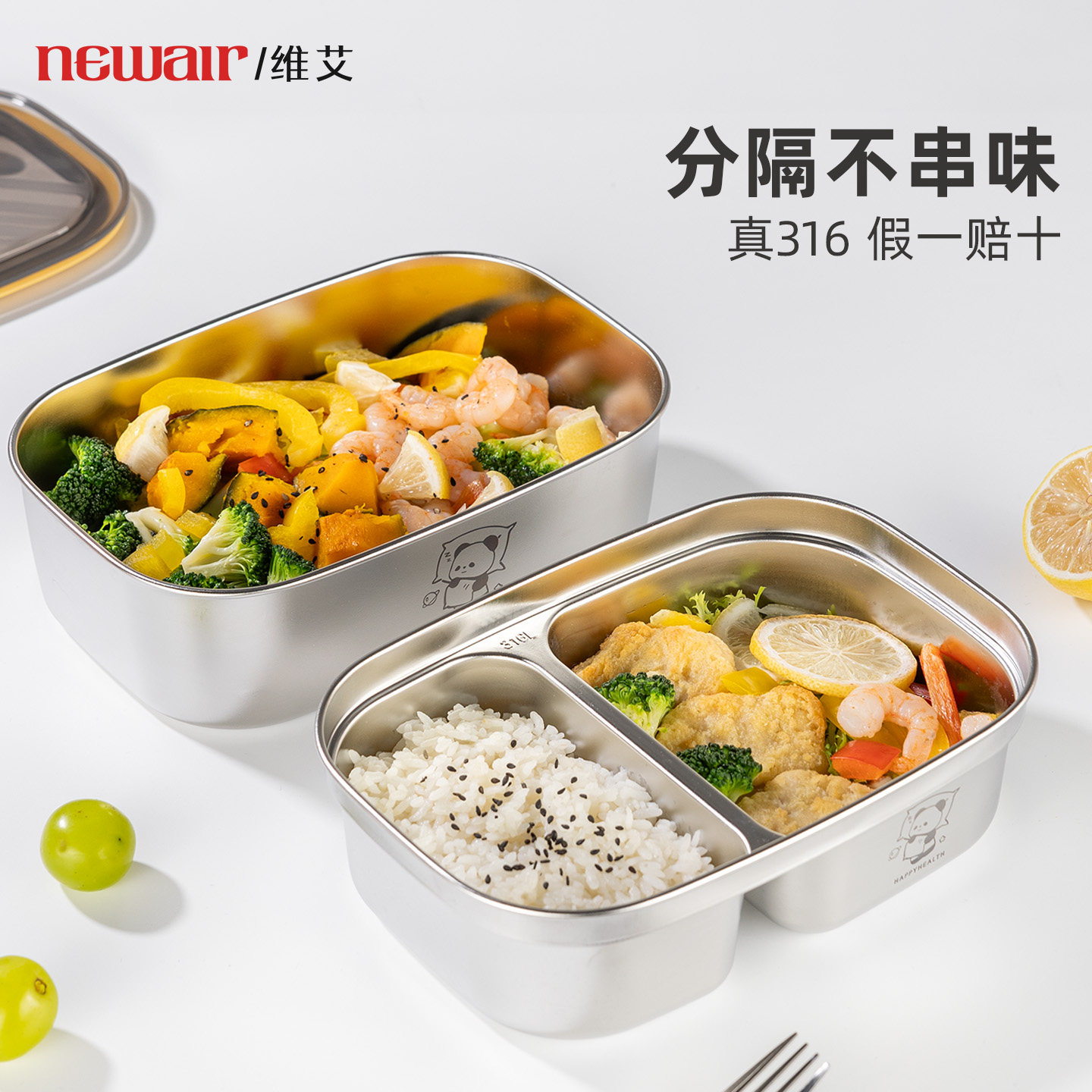 316L不锈钢饭盒食品级带盖分格餐盒上班族学生便当盒双格保鲜盒