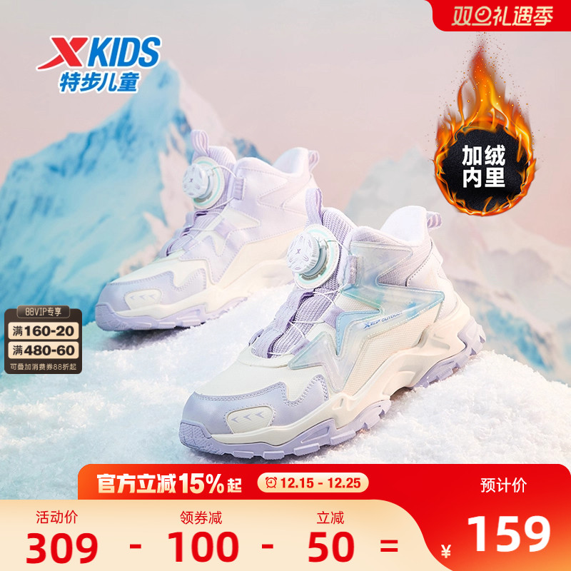 特步儿童鞋冬季新款高帮鞋皮面保暖鞋棉鞋女童冬鞋中大童运动鞋子