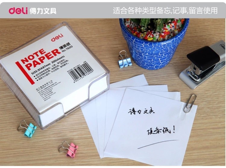 推荐理由:得力便签纸7600 带盒便条纸/记事白纸 规格91*87mm/300张
