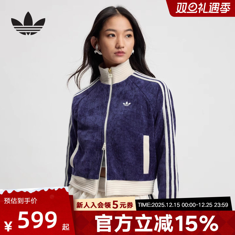 adidas阿迪达斯复古丝绒立领夹克春女三叶草双拉链针织外套JN0724历史价格