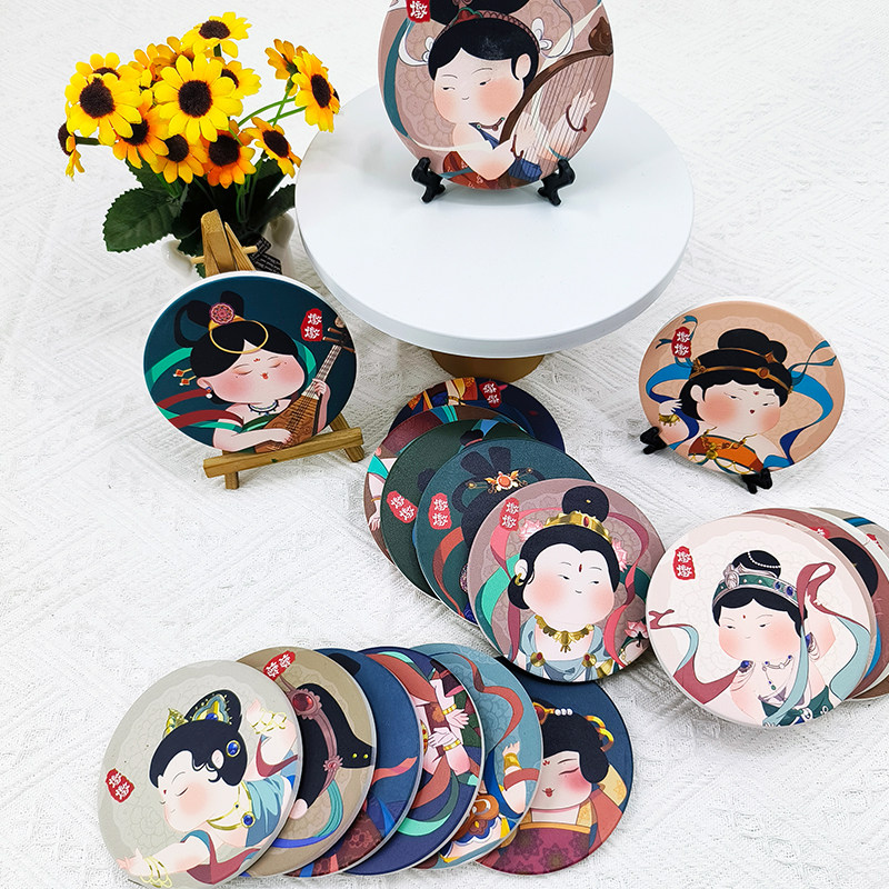 敦煌文创吸水陶瓷茶杯垫博物馆文创国潮风复古隔热垫送支架礼物