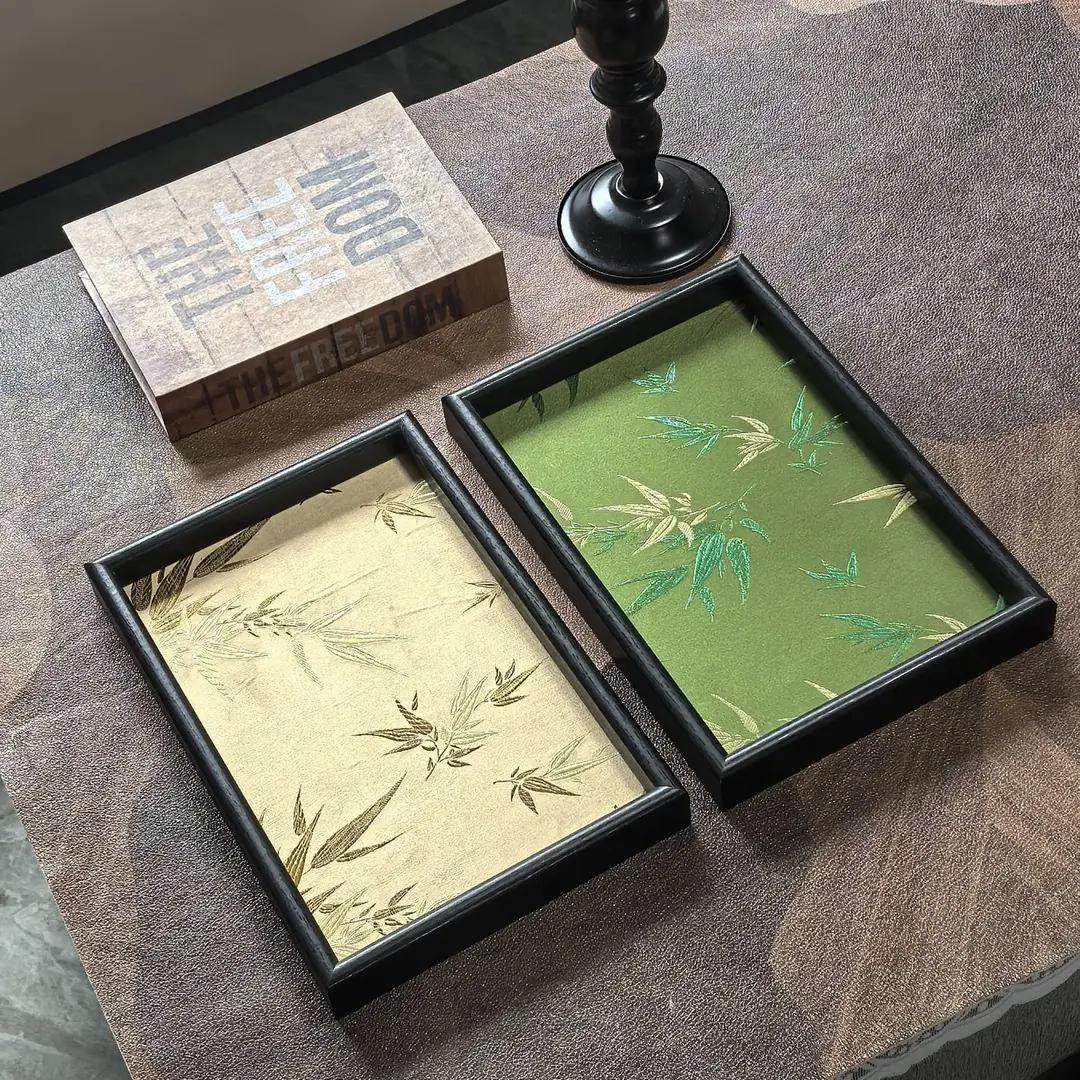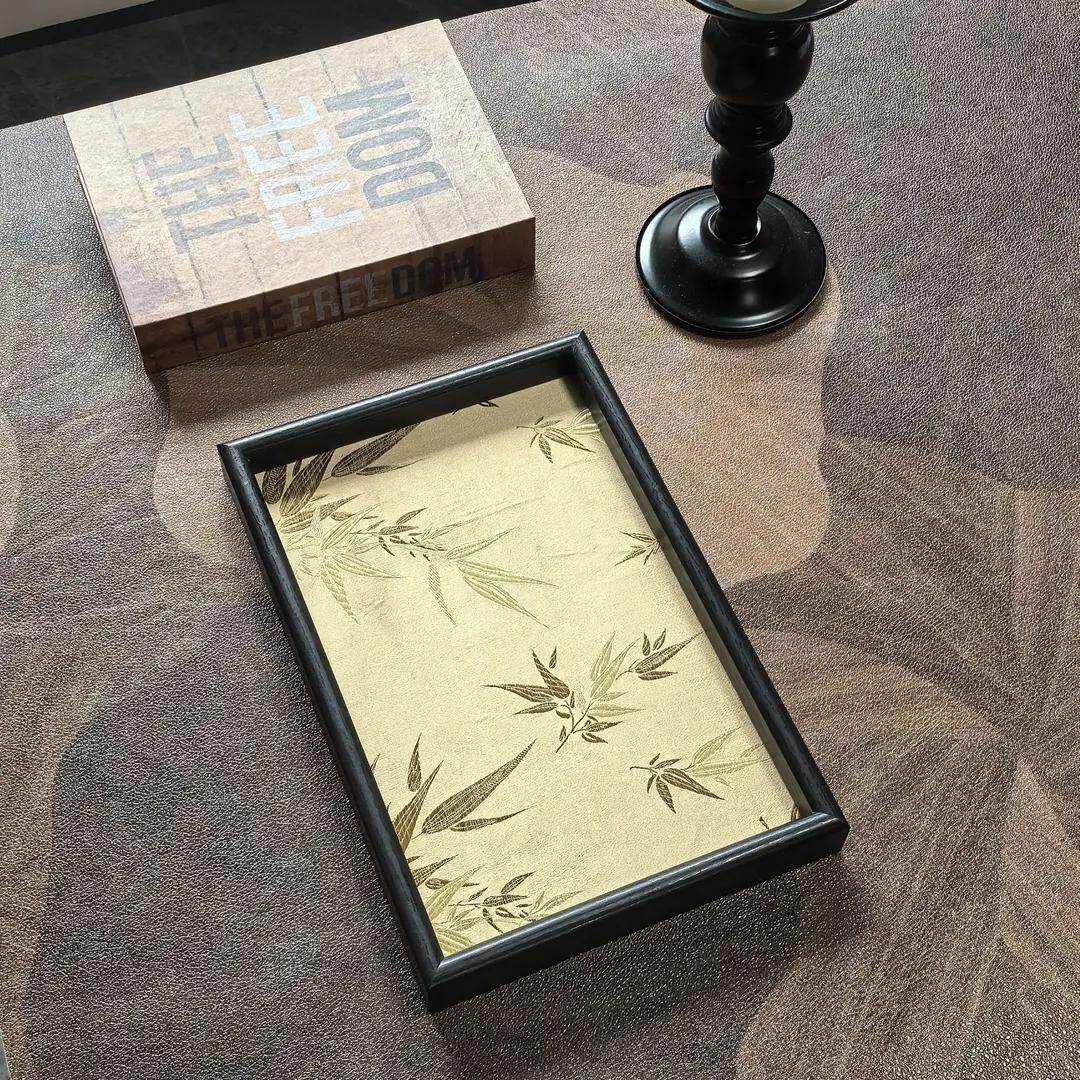 中式竹叶光影托盘客厅桌面杂物收纳木质置物盘复古高级感文玩茶盘