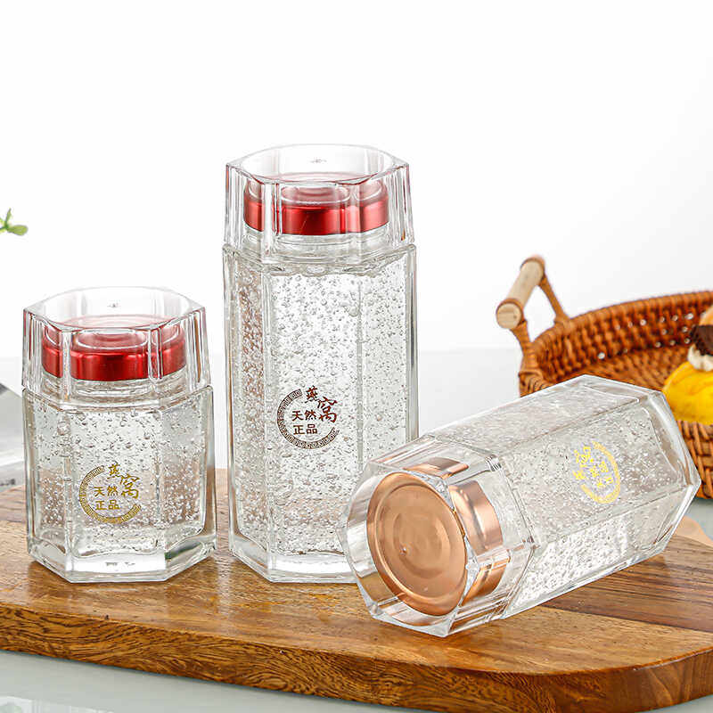 推荐理由:燕窝分装瓶可蒸煮食品级耐高温家用鲜炖燕窝花胶瓶无铅六棱蜂蜜罐