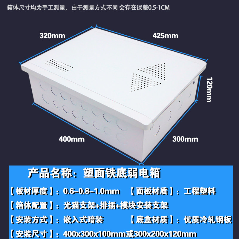 推荐理由:弱电箱家用暗装400*300多媒体信息箱塑料盖布线箱光纤网络集线箱