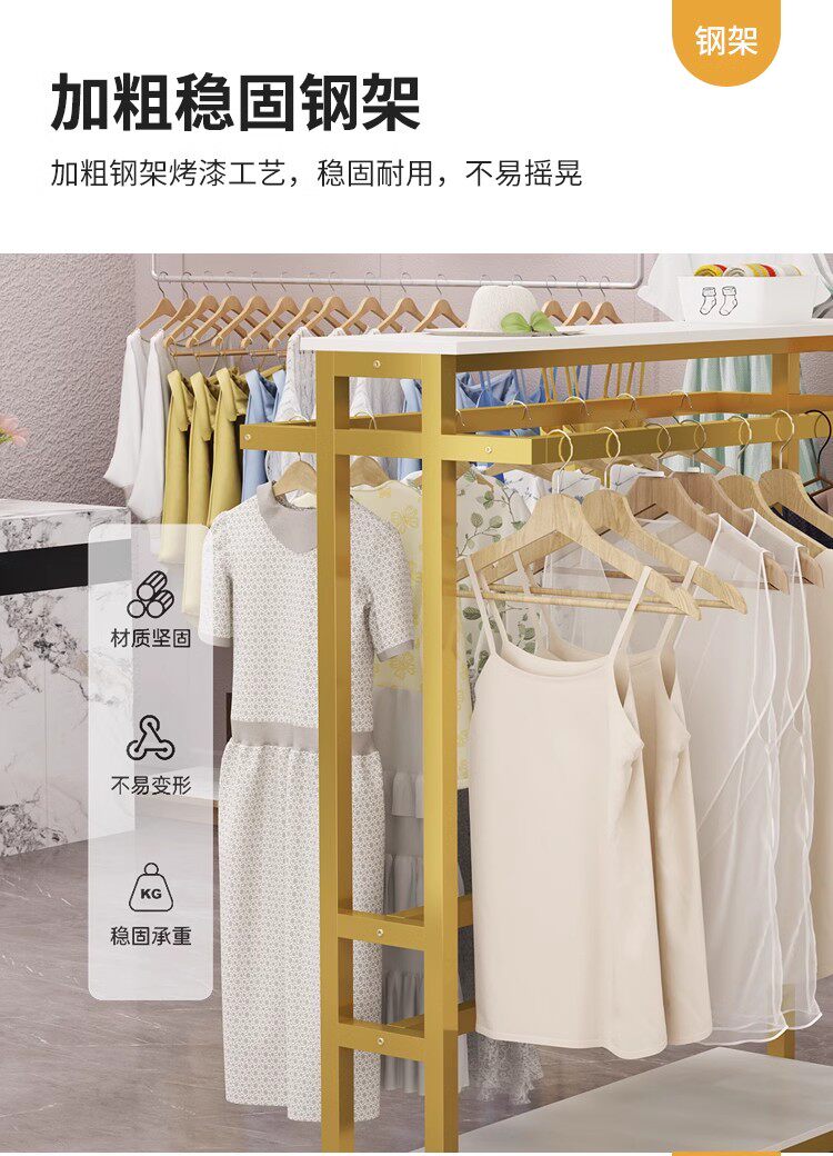 推荐理由:服装店中岛架落地展示架简约男女装童装双排中间货架双杠侧挂衣架