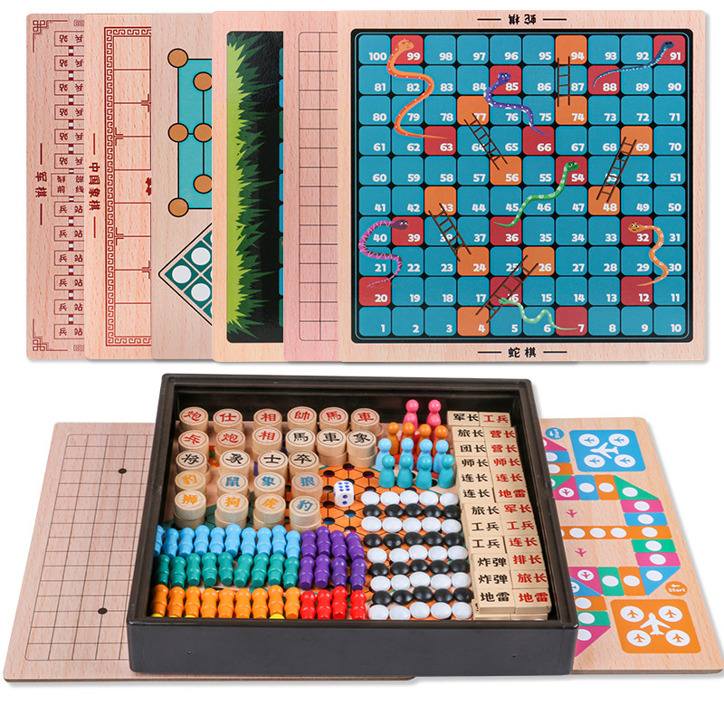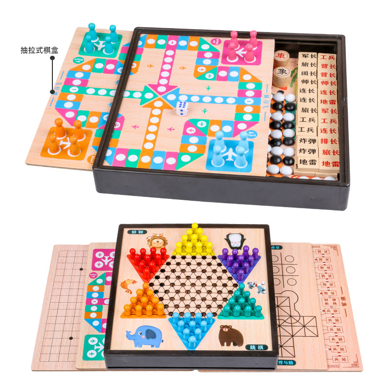 飞行棋跳棋多功能游戏棋木制五子棋象棋斗兽成人儿童学生益智玩具