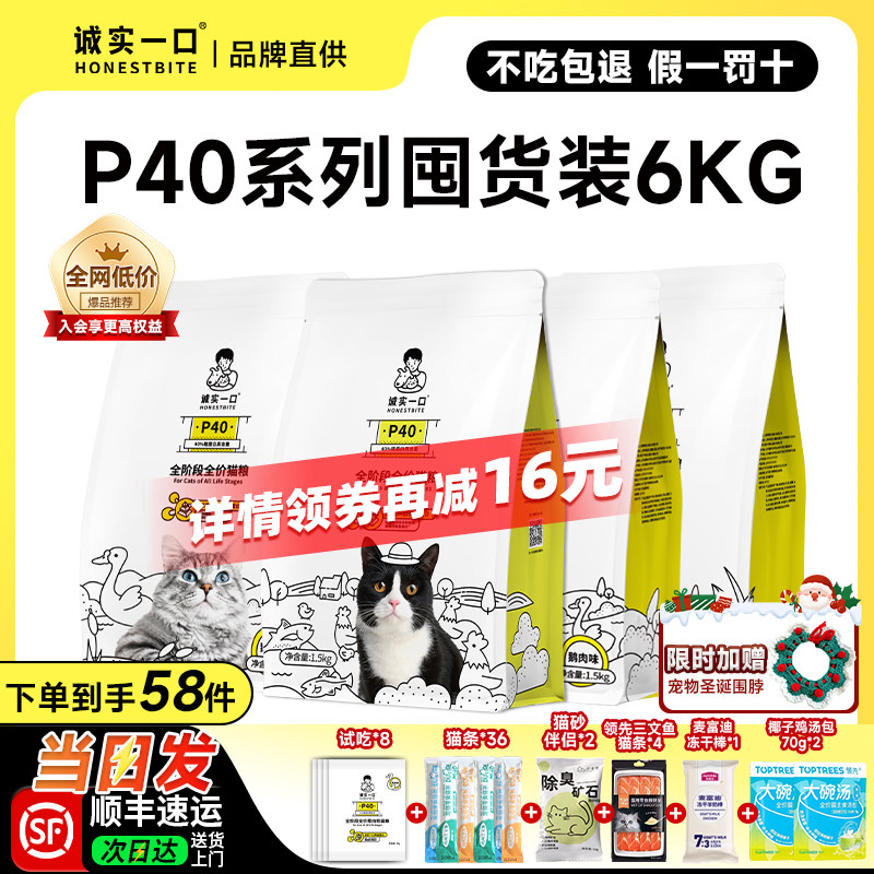 【囤货装】诚实一口p40猫粮p40plus大包p32黑金烘焙全价膨化粮6KG