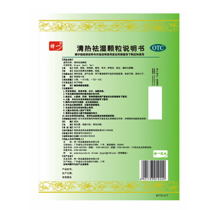 清热祛湿颗粒20袋夏季防暑广东凉茶除湿解暑湿热清热袪湿颗粒特一