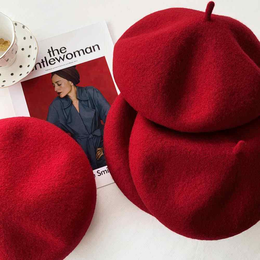 复古红色羊毛贝雷帽画家帽子圣诞新年节日百搭秋冬蓓蕾帽送礼女韩