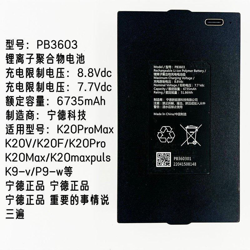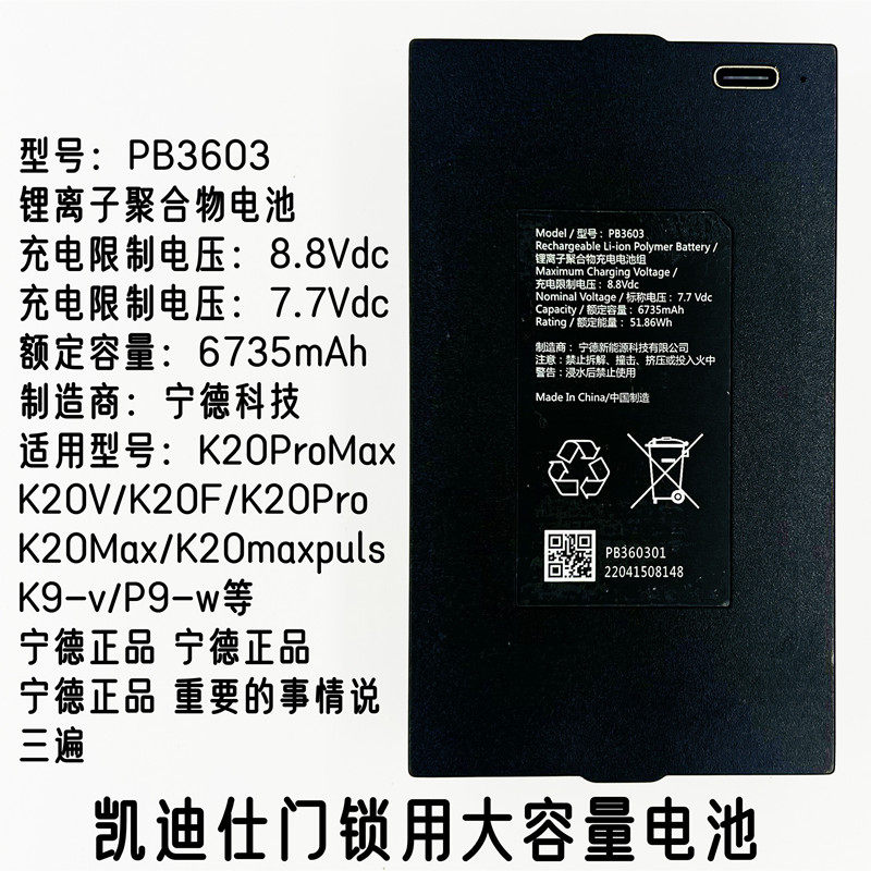 推荐理由:凯迪仕智能锁用正品宁德K20ProMax/K20用大容量PB3603锂电池配件
