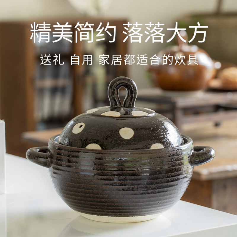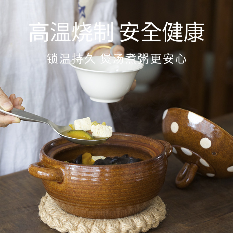曼叙家用燃气灶砂锅煲耐高温汤煲炖锅可明火复古波点陶土煲汤砂锅
