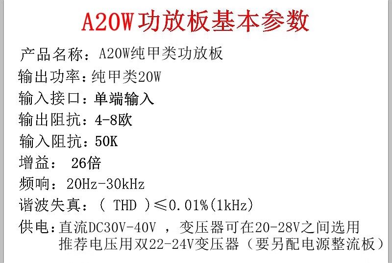 推荐理由:A20W纯甲类功放板 音乐*传真电路 中甲发烧级HiFi 安森美金封管王