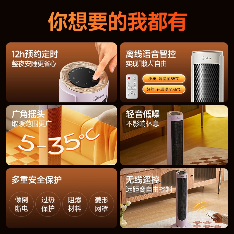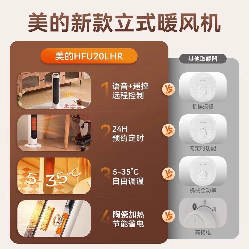 推荐理由:美的智能语音取暖器热风机立式节能暖风机冬季家用2025新款烤火炉