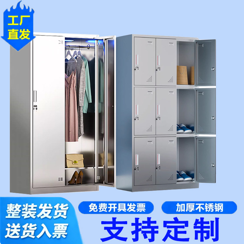 不锈钢更衣柜无尘净化车间员工储物柜宿舍食品工厂斜顶多门柜