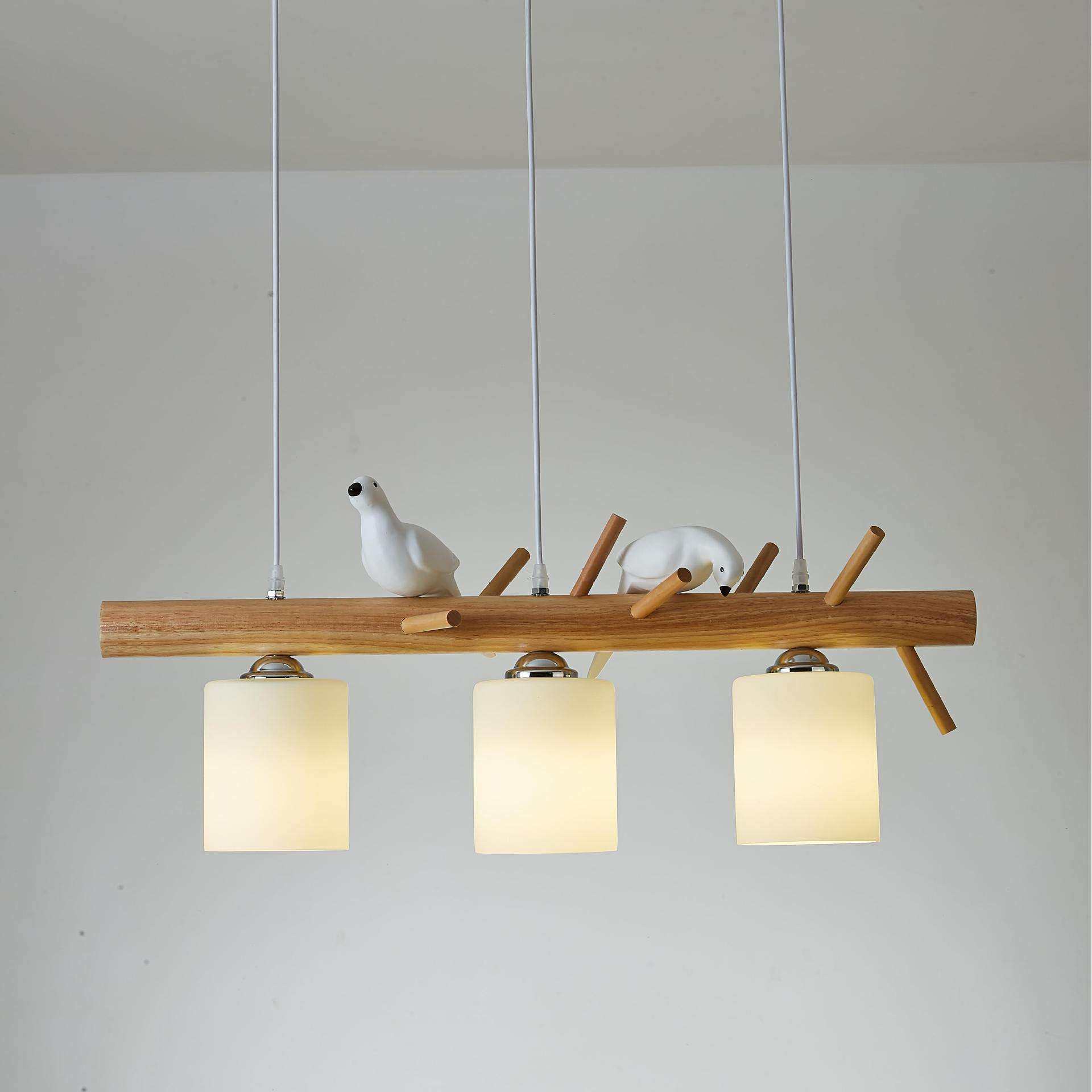 餐厅吊灯直杆设计师小鸟创意实木灯具简约现代北欧吧台灯样板间