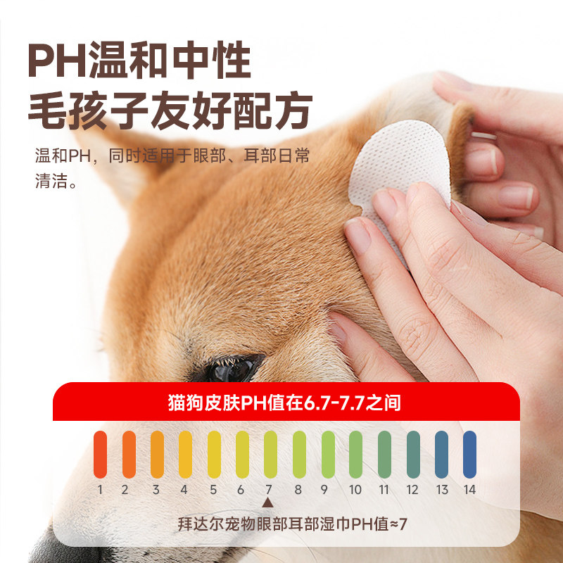 拜达尔宠物湿巾耳部清洁猫咪狗狗擦耳朵抑菌专用去耳垢除臭湿纸巾