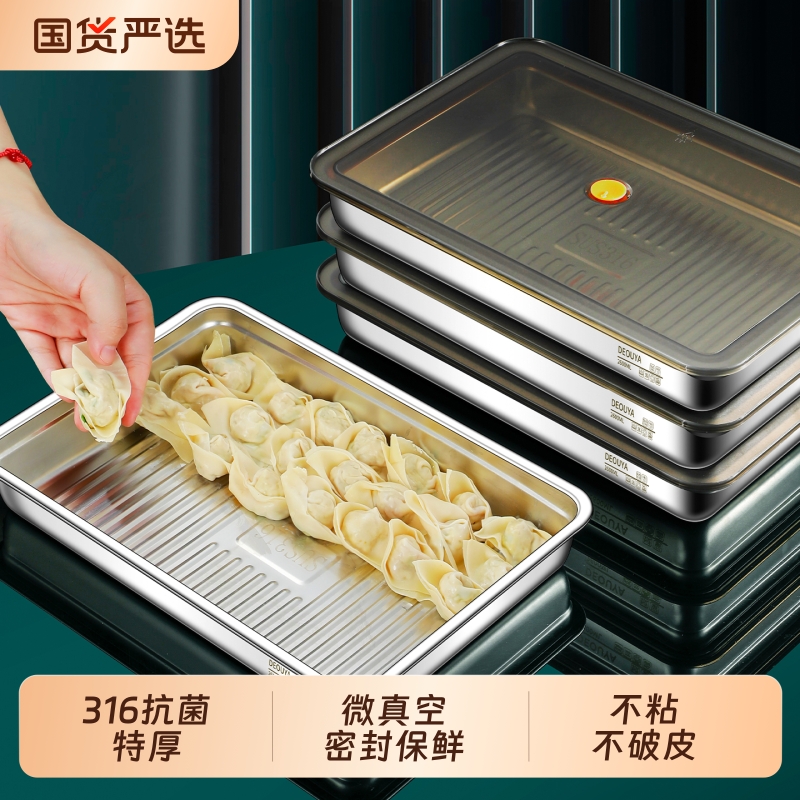 316不锈钢饺子冷冻盒馄饨收纳盒托盘水饺保鲜盒备菜盘冰箱食品