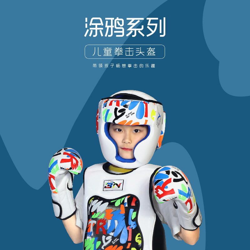 BN头盔成人儿童护头套跆拳道泰拳散打加厚3N头盔搏击拳击训练护具