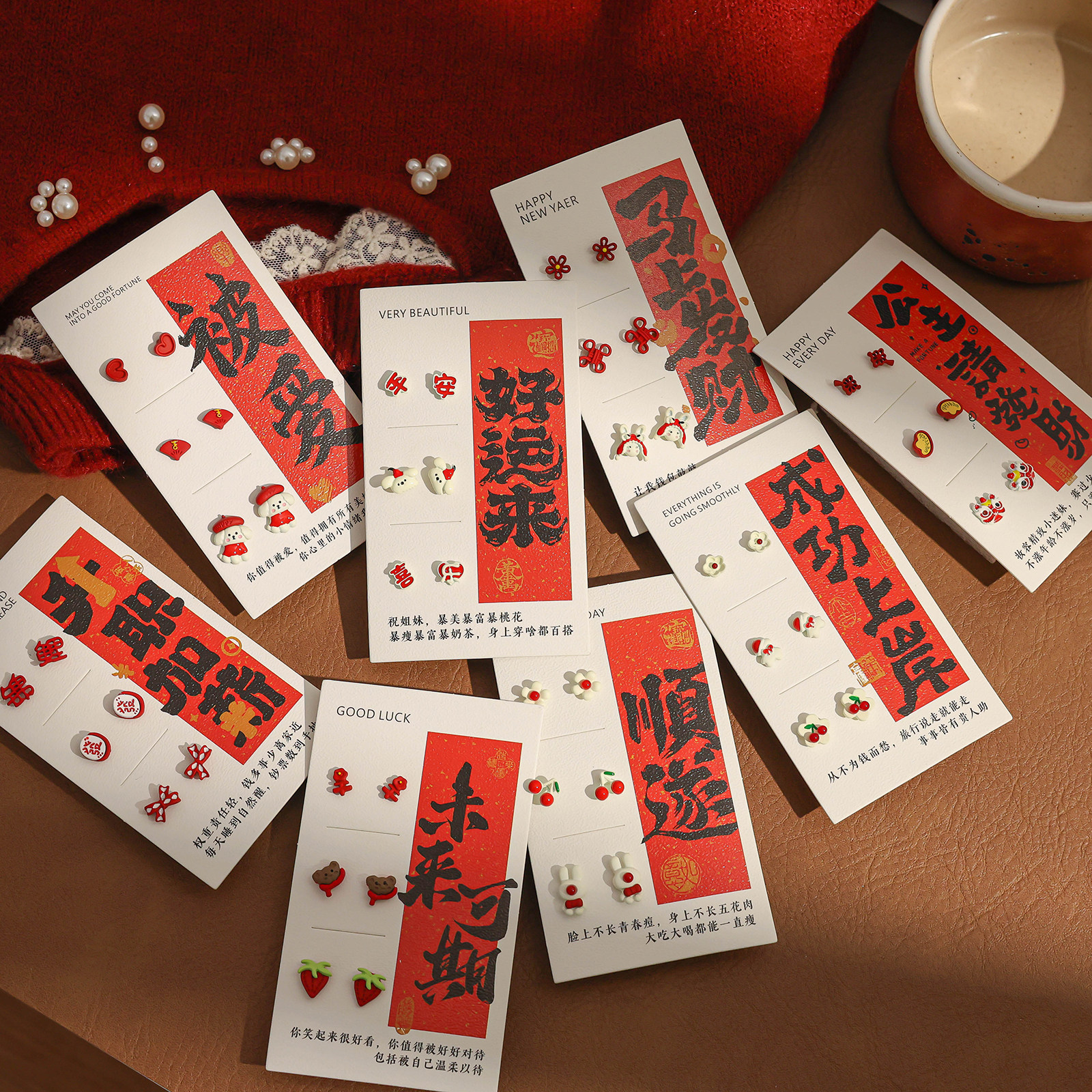 推荐理由:2026新款过年春节耳钉本命年马年红色系小巧耳环国风喜庆醒狮耳饰
