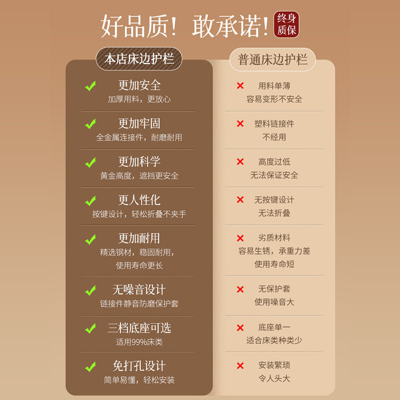 H.Fine老人床围栏护栏婴儿挡板防掉床起床起身辅助器床边扶手栏杆