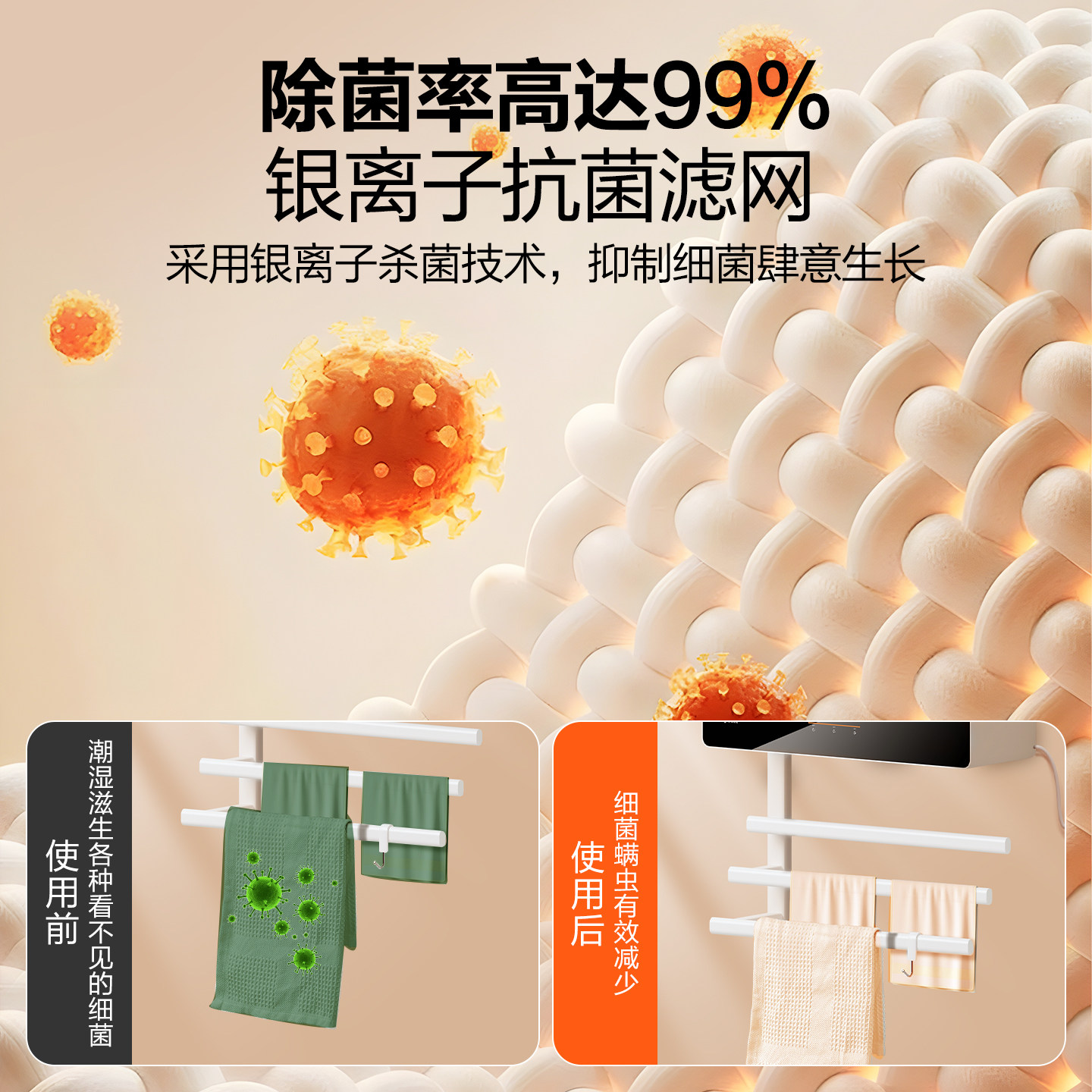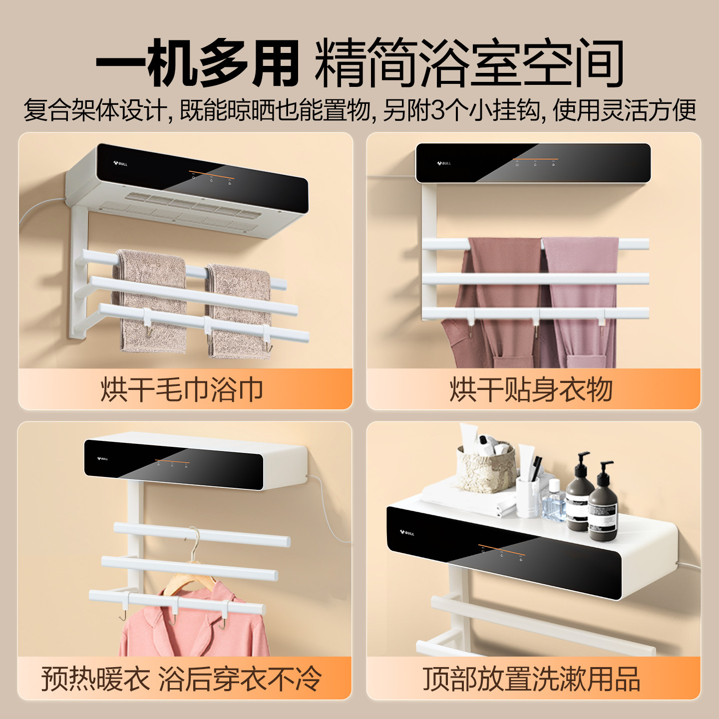 推荐理由:智能烘干、99%除菌、取暖三合一毛巾架