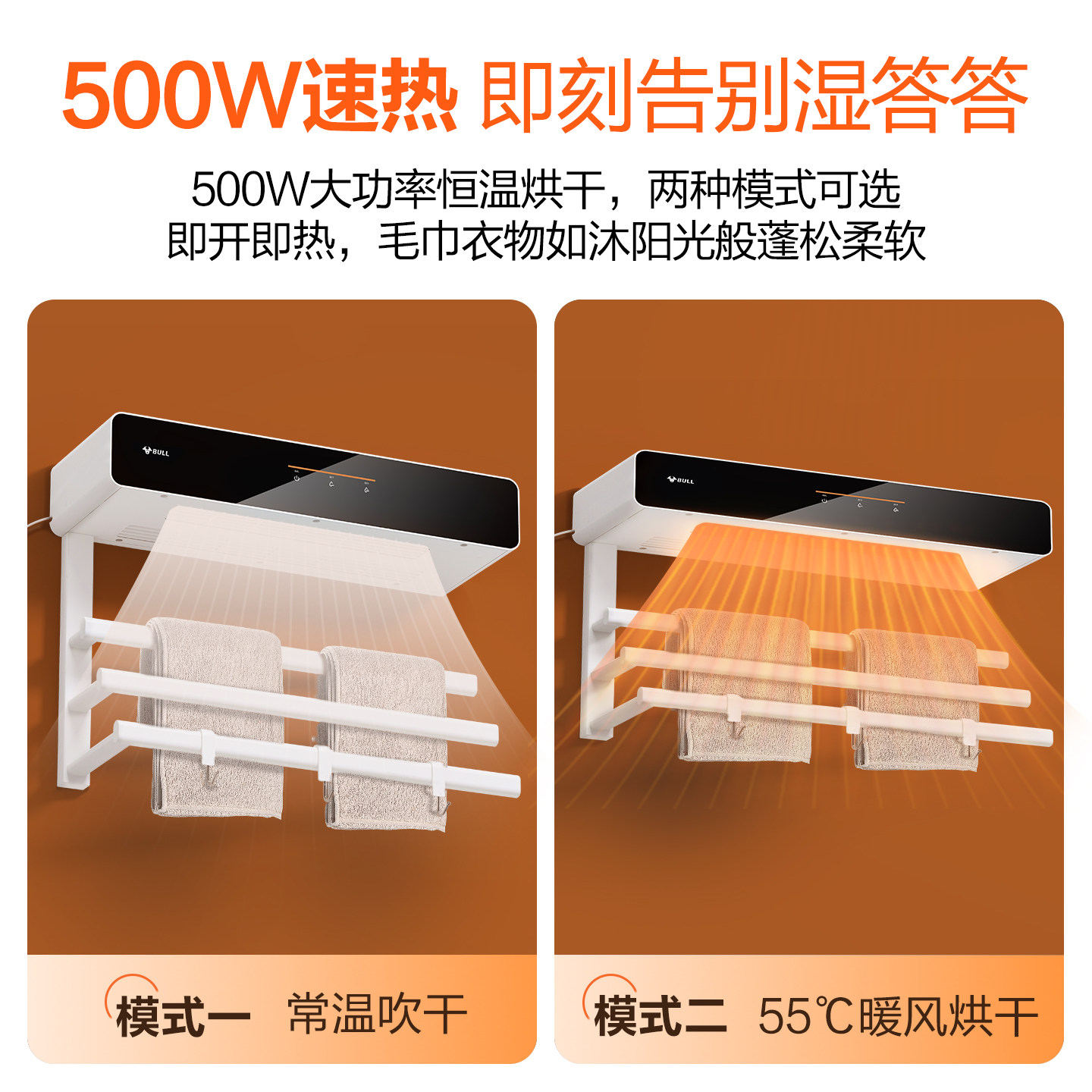 公牛智能烘干毛巾架卫生间免打孔加热取暖器置物架发热除菌浴巾架