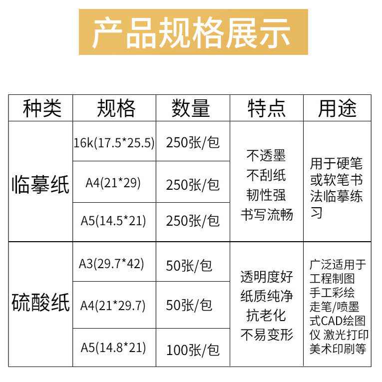 推荐理由:临摹纸拷贝纸透明纸硫酸纸a4描红薄纸书法画画描字纸描图纸半透明