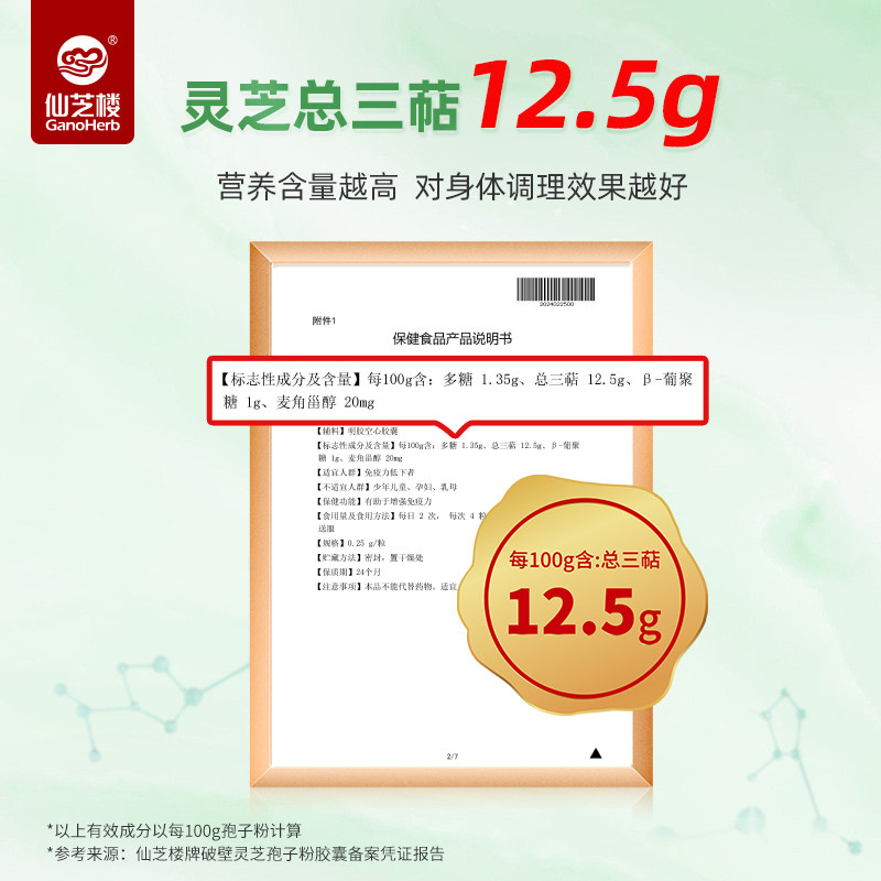 仙芝楼牌破壁灵芝孢子粉胶囊0.25g*80粒增强免疫力正品官方旗舰店