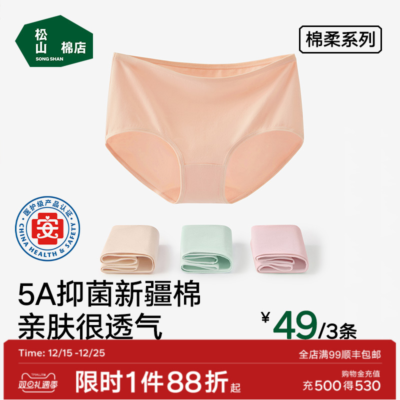 松山棉店新疆棉女士纯棉内裤全棉抗菌透气女生不夹臀三角裤秋薄款