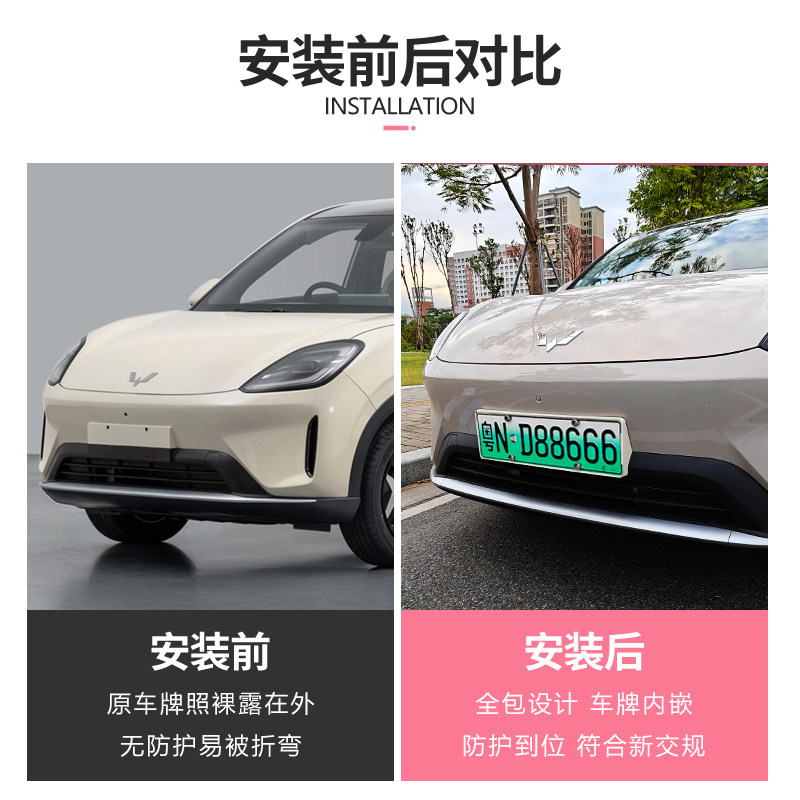 五菱缤果S专用车牌架新能源汽车牌照托框架防盗框保护套改装配件
