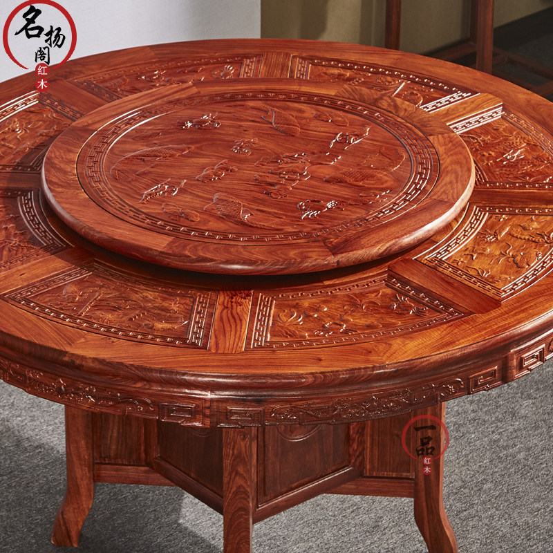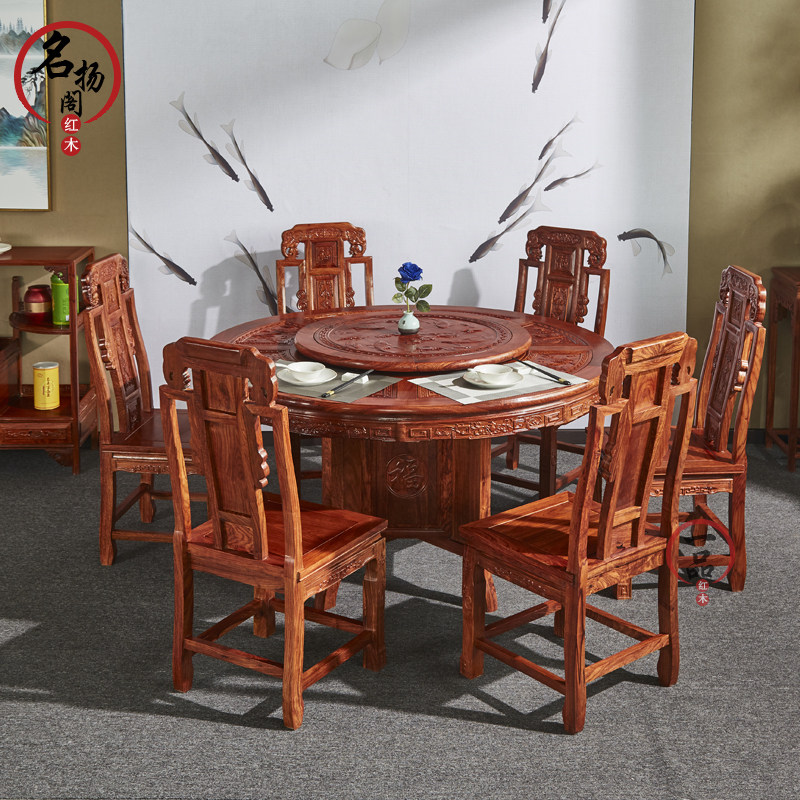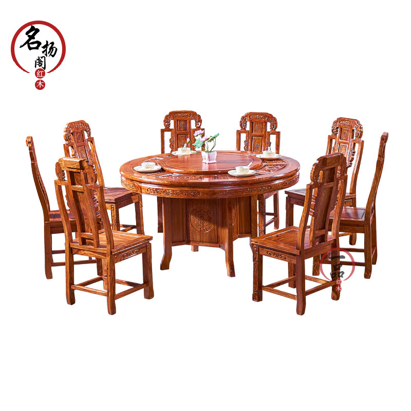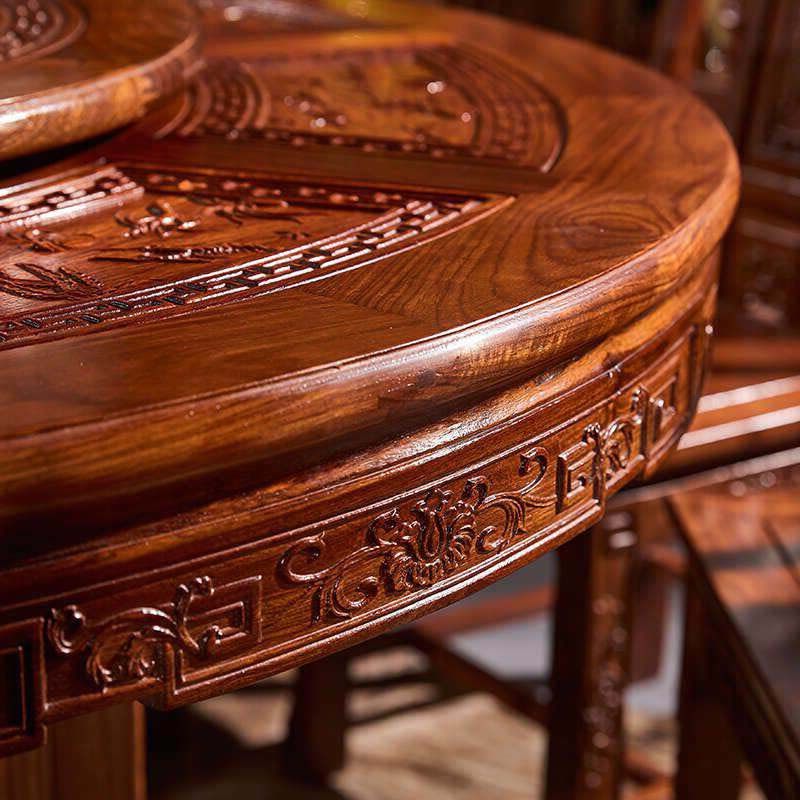 推荐理由:红木圆餐台刺猬紫檀中式圆餐桌花梨木圆桌实木家具象头餐桌椅组合