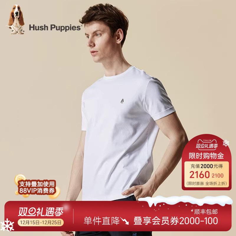 hushpuppies暇步士男装休闲透气短袖T恤夏季圆领纯色百搭基础上衣