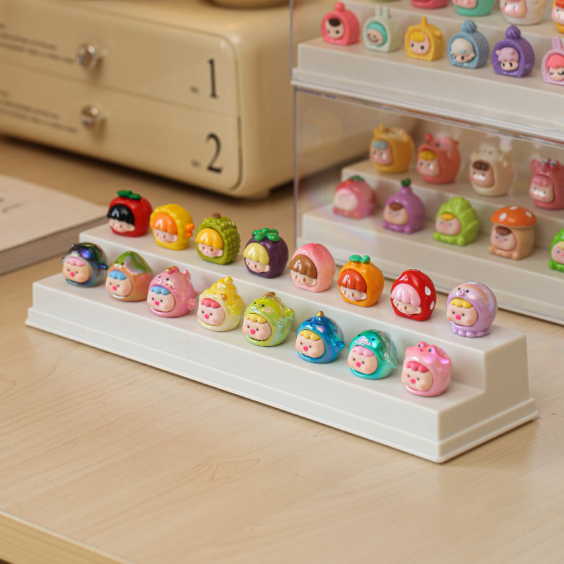 萌粒盲盒展示架收纳摆件立牌手办展示柜娃娃透明亚克力展示盒阶梯
