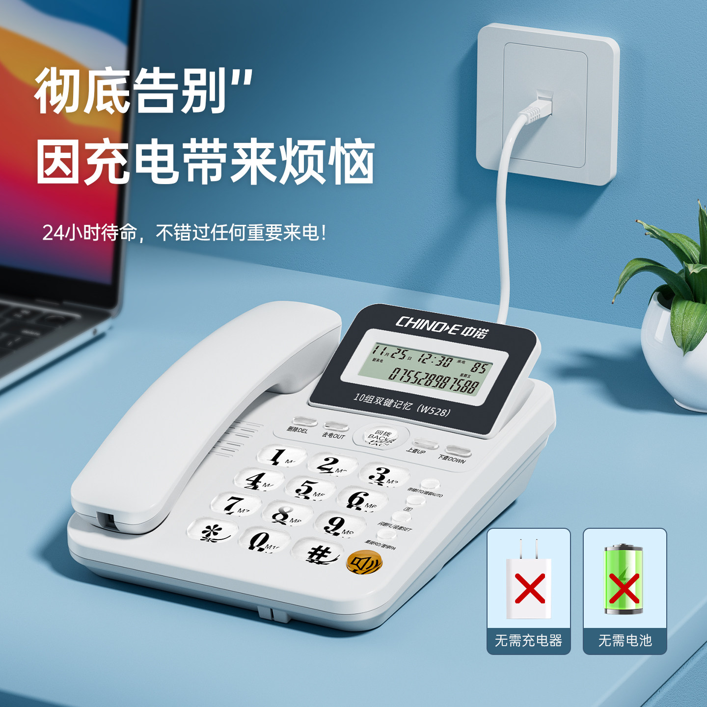 推荐理由:【一年免费换新机】中诺座机免电池来电显示
