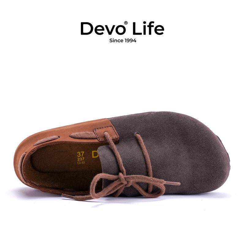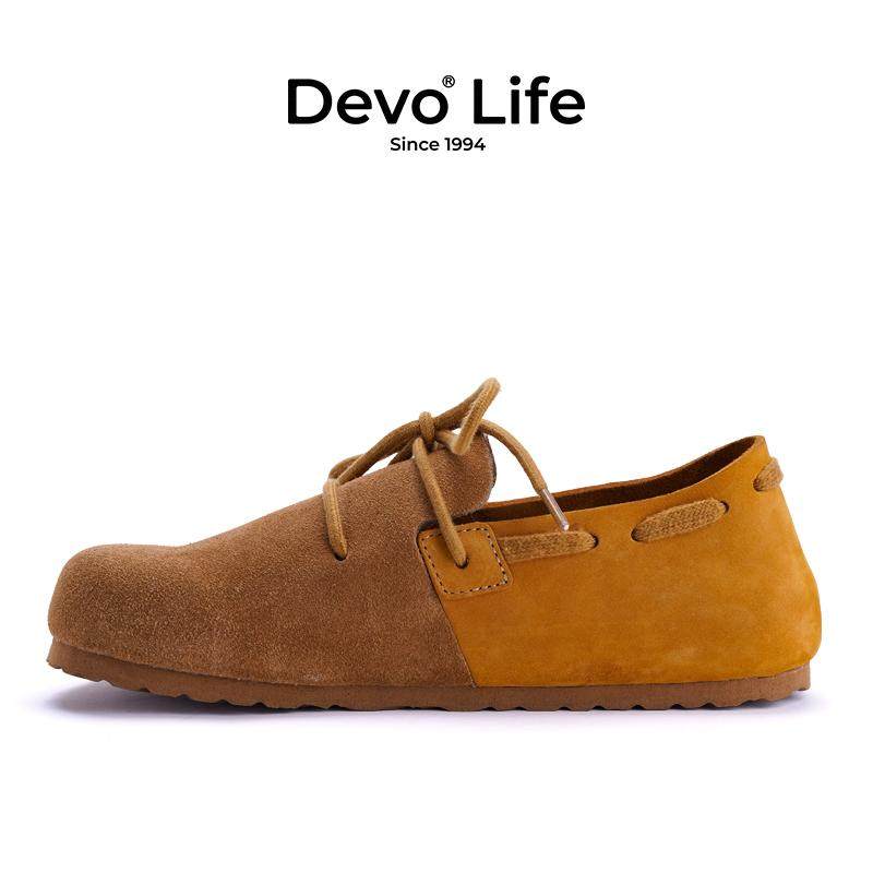 Devo/的沃软木鞋全包休闲系带时尚复古文艺平底一脚蹬女鞋24069