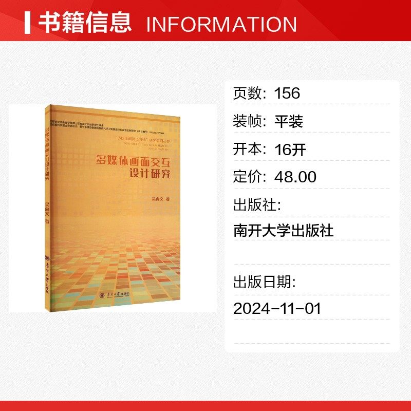 多媒体画面交互设计研究 吴向文 著 图形图像/多媒体(新)专业科技 新华书店正版图书籍 南开大学出版社