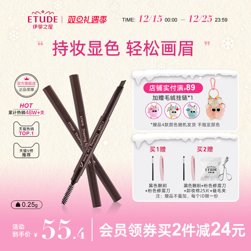 ETUDE HOUSE/ 3支 伊蒂之屋爱丽小屋初学者眉笔女野生眉防水持久