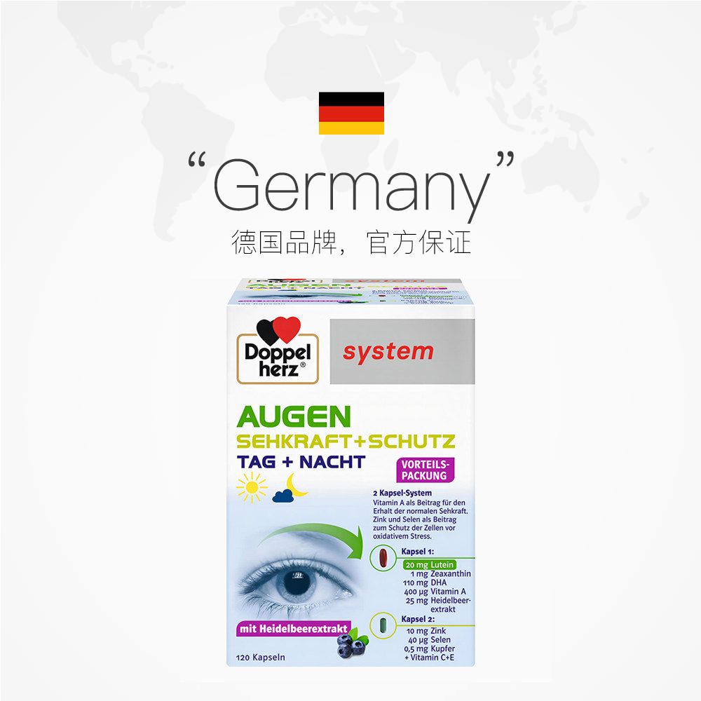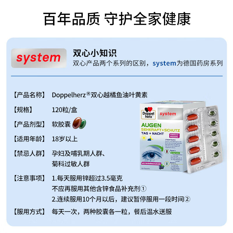 【自营】德国双心越橘鱼油DHA叶黄素复合配方高端护眼宝胶囊120粒
