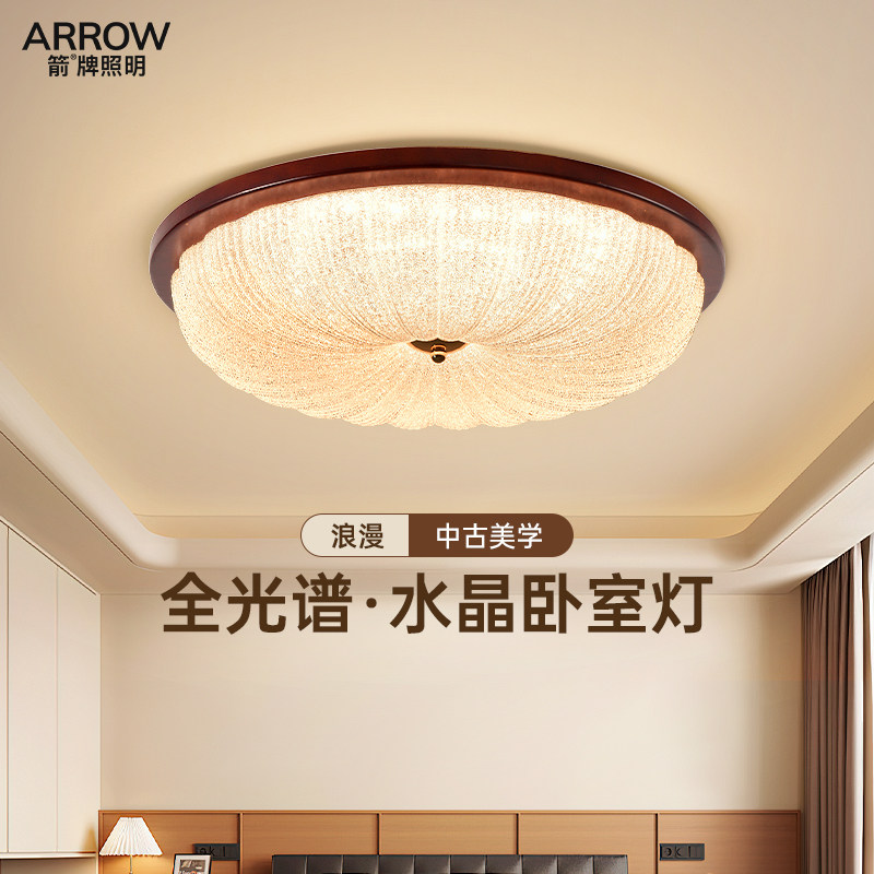 箭牌中古风卧室灯书房间吸顶灯胡桃木色设计师全光谱护眼灯具合集