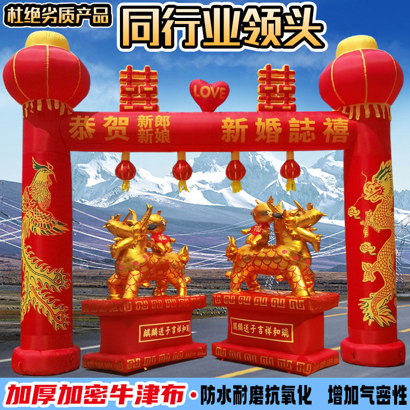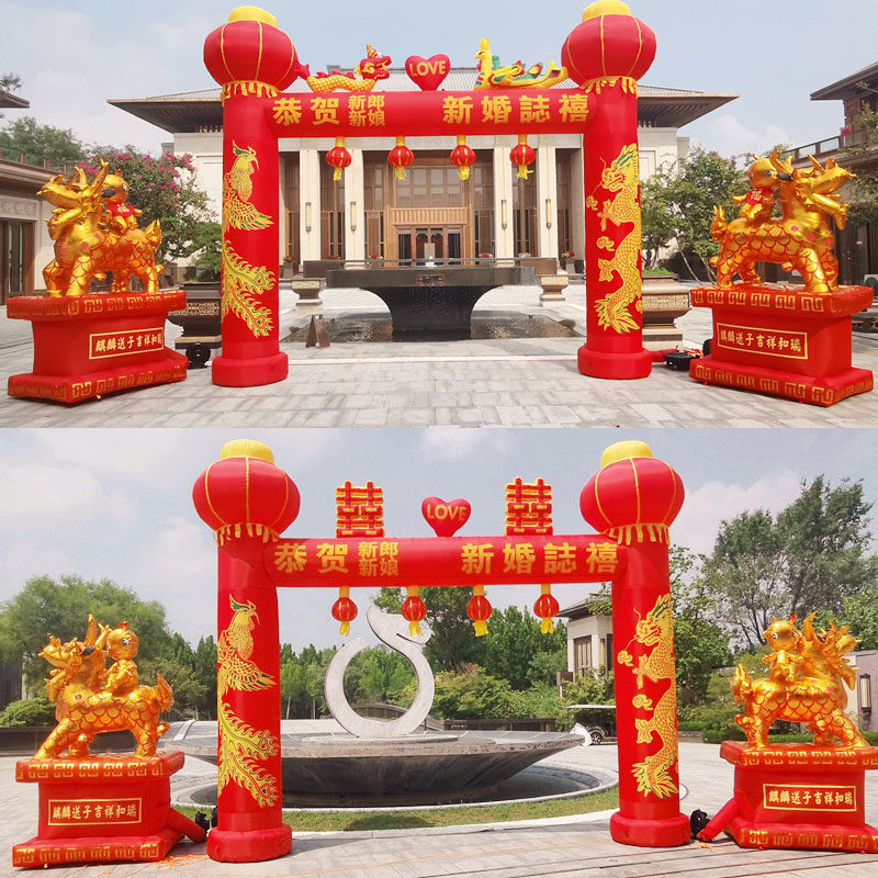 结婚拱门婚庆新款充气彩虹门装饰喜事结婚气模灯笼婚礼龙凤气拱门