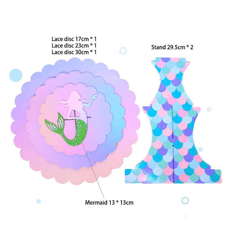 创意款北欧风婚庆甜品台展示架生日派对用品纸质三层美人鱼蛋糕架