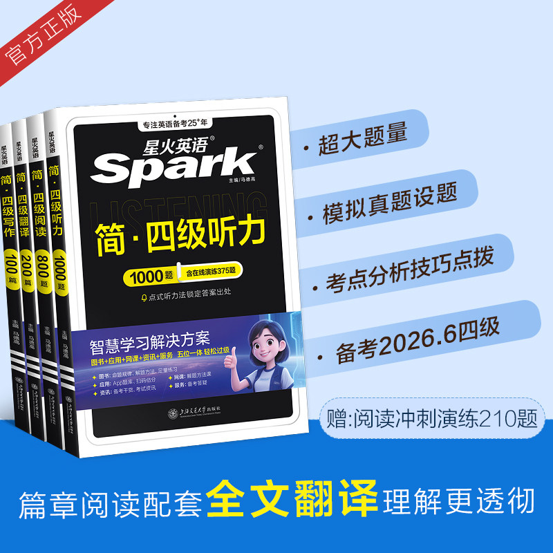 星火英语四级阅读理解听力专项训练书大学cet46四六级英语听力阅读真题翻译作文模板专项训练习题2026年6月备考试卷英语真题资料