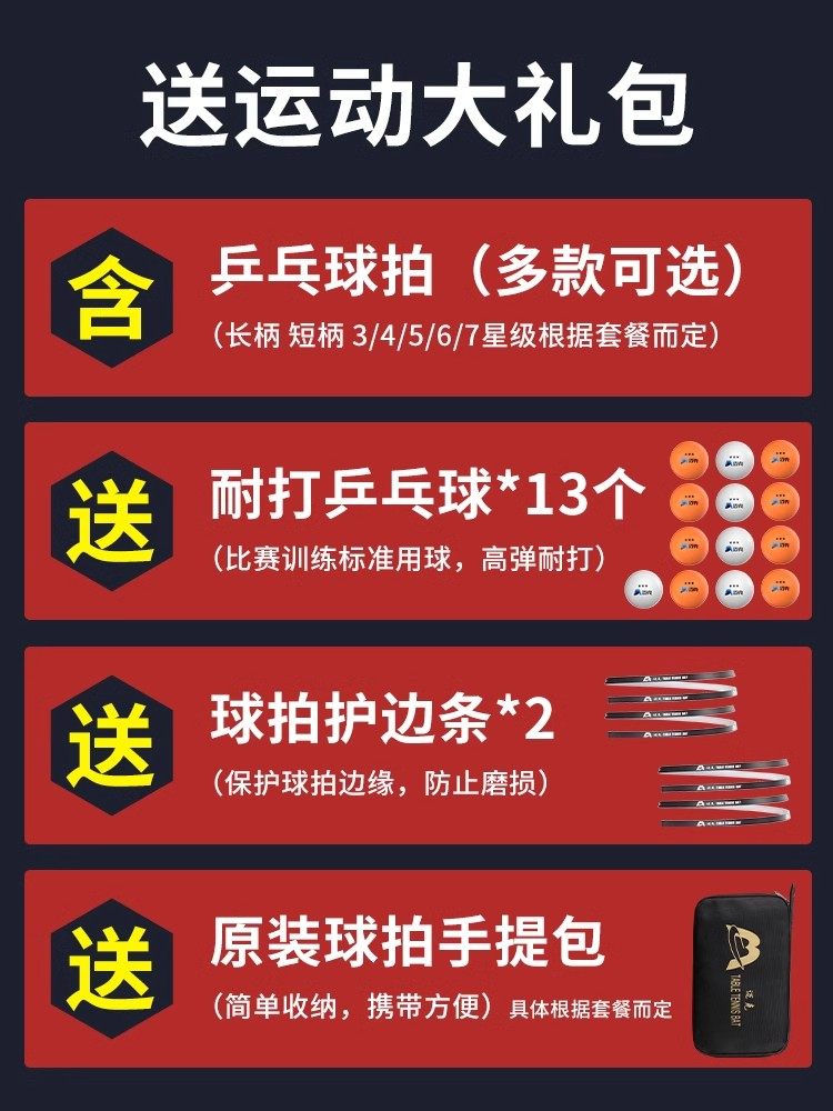 推荐理由:下单即送13颗乒乓球+护边条+拍包