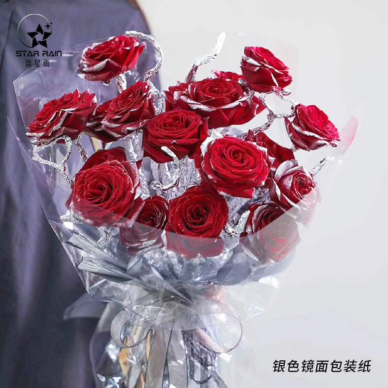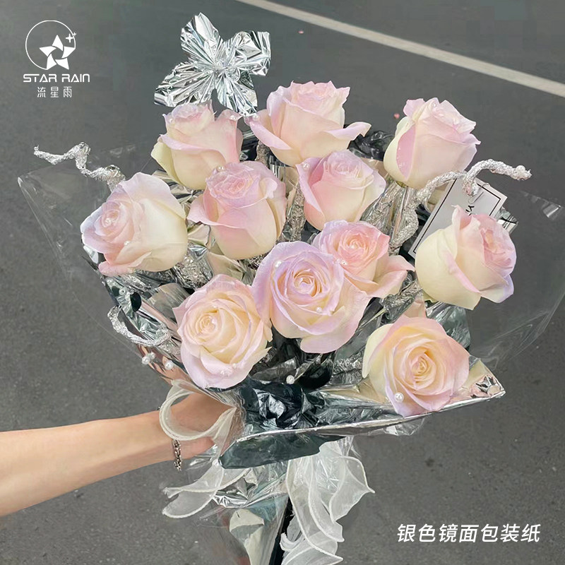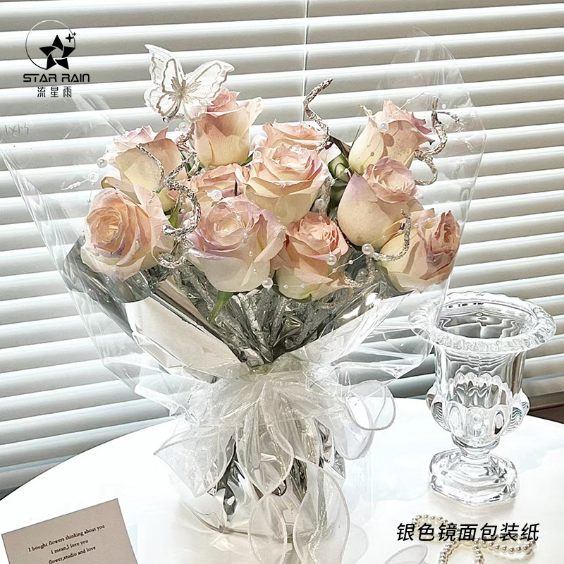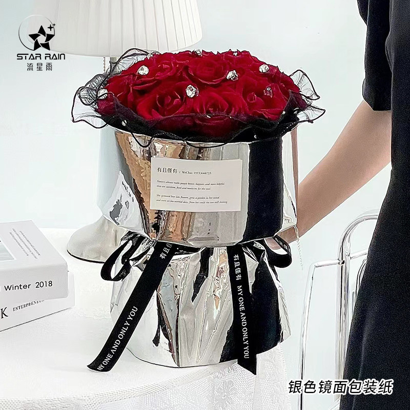 银色镜面艺术纸鲜花包装纸花束包花材料花艺防水金属亮面反光锡纸