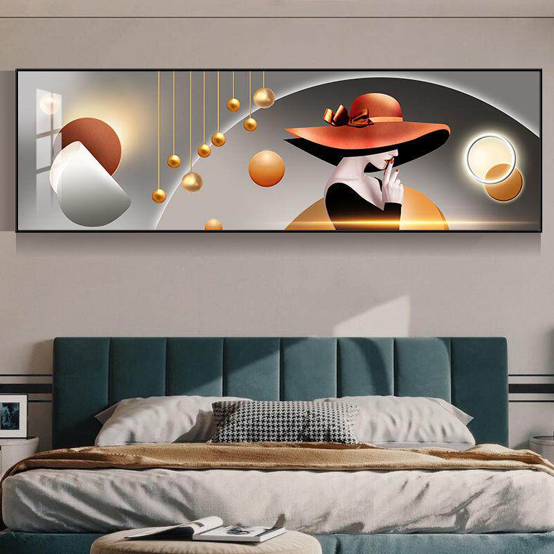 温馨轻奢卧室装饰画现代简约主卧房间挂画高级感壁画横版客厅墙画