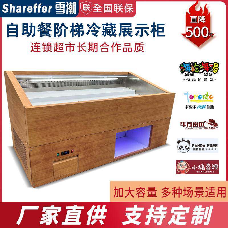 自助餐木纹阶梯冰台寿喜烧喷雾点菜柜保鲜柜明档冰台冷藏展示柜