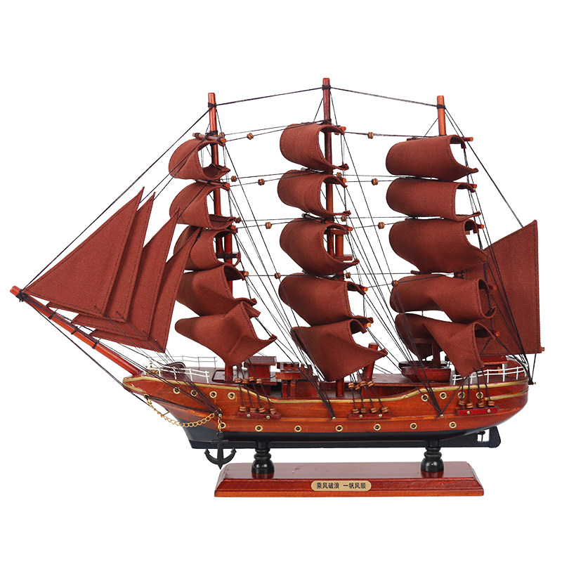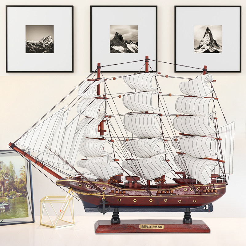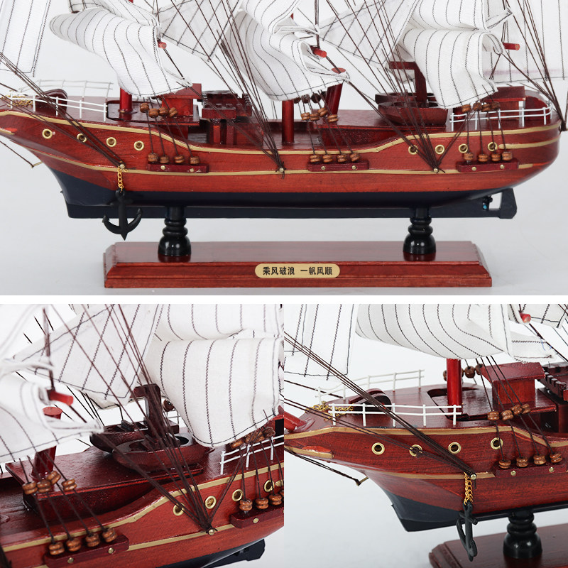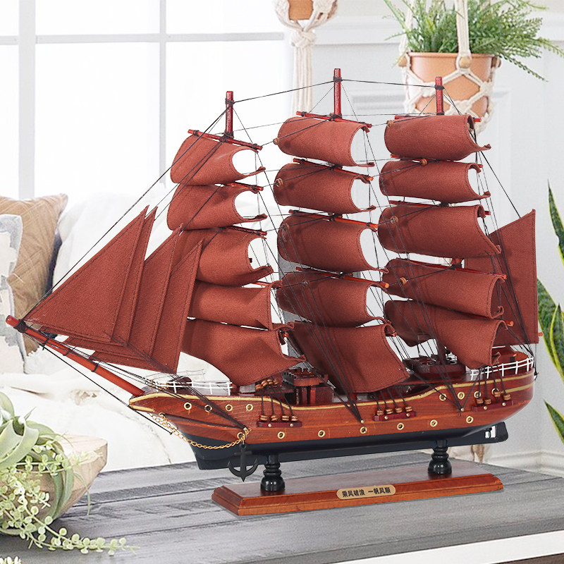 地中海风格中式帆船模型摆件实木船一帆风顺工艺品装饰船新居礼物
