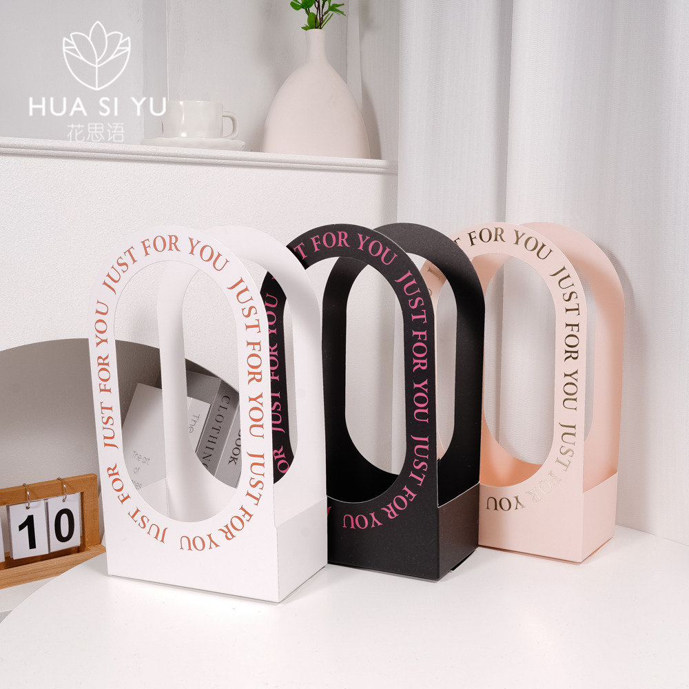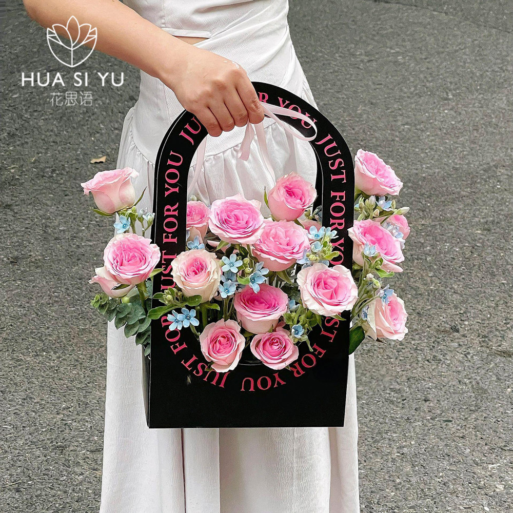 英文烫金手提花盒镂空折叠鲜花束插花艺手工diy材料包装盒情人节
