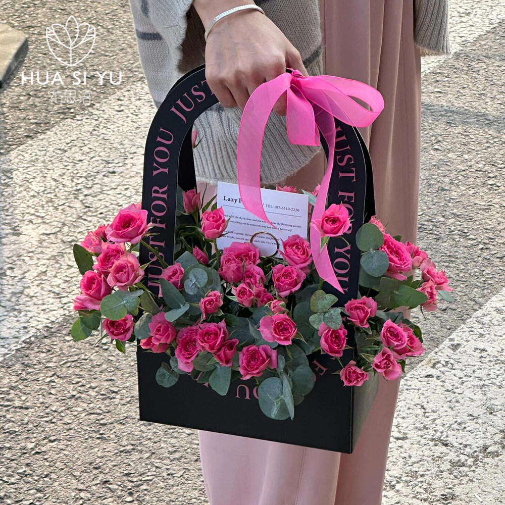 推荐理由:英文烫金手提花盒镂空折叠鲜花束插花艺手工diy材料包装盒情人节